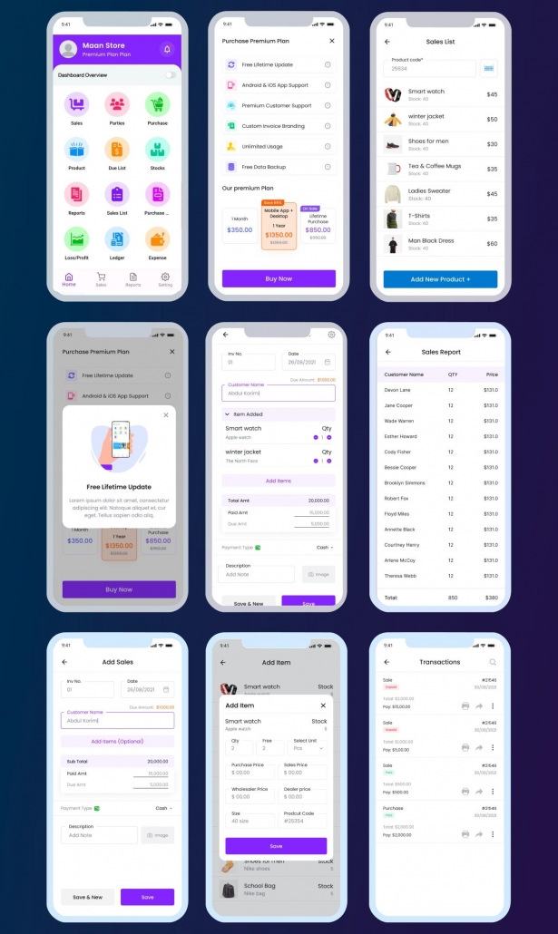 POS SaaS库存软件/多语言进销存仓库管理系统(App+Web+超级管理员)是一种尖端的销售点 (POS) 解决方案,配合蓝牙pos打印机和订阅系统使用。包含完整的应用程序模板、即用型屏幕、小部件、插图以及涵盖 Mobile POS Inventory 应用程序的精美屏幕。此外,该应用程序还包含产品、销售、采购、聚会、损失/利润、库存、分类账、销售清单、采购清单、到期清单、报告和费用。