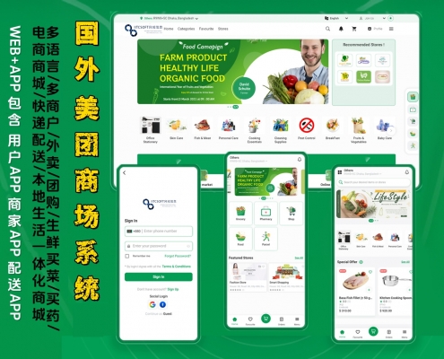 国际版多语言定制开发同城美团电商平台APP:汇聚海外多商户,涵盖外卖点餐、生鲜买菜、买卖药品,租车服务、结合本地快递跑腿配送,打造一站式国外本地生活体验商城系统