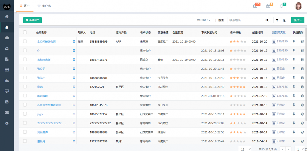 客户管理:线索、筛选、标签等