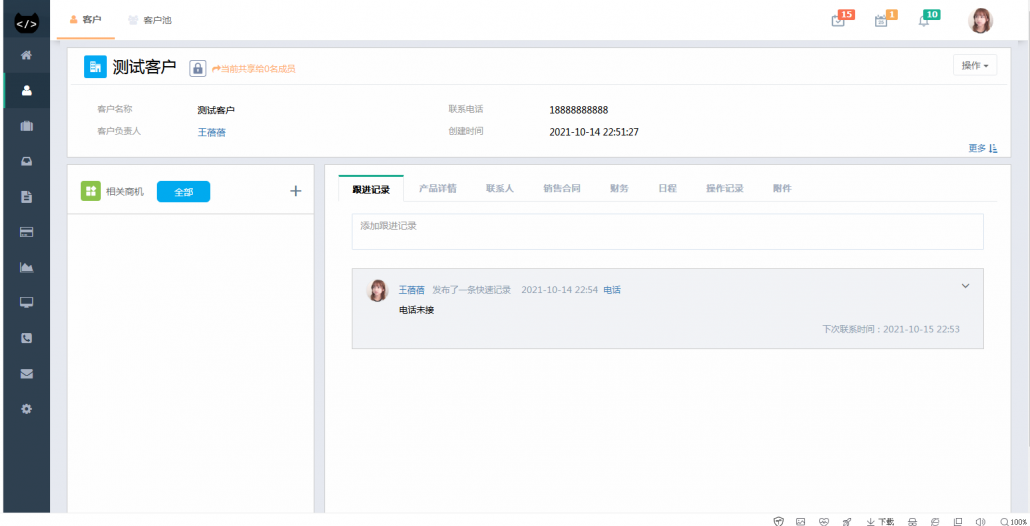 对商机进行来源分类,商机等级评定,销售阶段的定义等等信息的新建与维护逐步完善商机,一键转化商机,进一步促进签单。